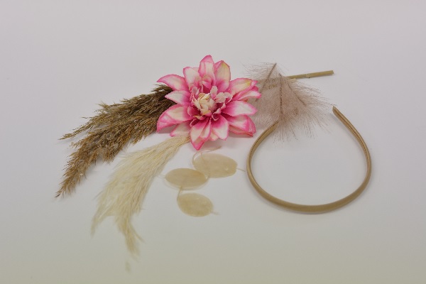 Vietä ikimuistoinen hetki yksin tai yhdessä ystäviesi kanssa ja luo upea kukkapanta DIY-kukkapanta -pakettimme avulla. Hempeitä silkkikukkia, heinää/ höyheniä, silkkiterälehti ja terälehtiä. Päästä luovuutesi valloilleen ja valmista kukkapanta jokaiseen menoon ja hetkeen!