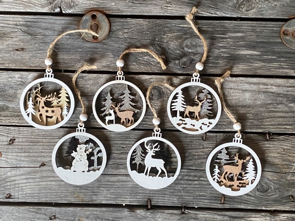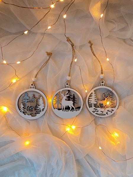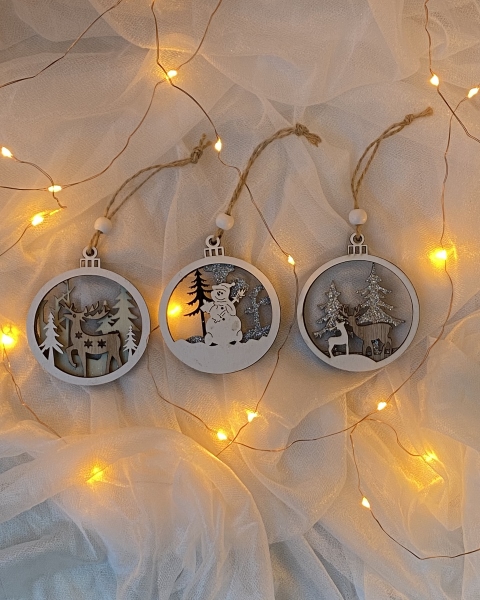 Upeat puiset maisema-pallot sopivat moderniin tai perinteiseen joulu-/talvitunnelmaan. Kolmikerroksinen laserleikkaus luo upean komiulotteisen tunnelman ja on näin ollen paksumpi ja kestää vuodesta toiseen. Yksityiskohtia maalattu kauniisti kiiltävällä glitterillä ja mustavalkoisilla väreillä. Reilu ripustuslenkki puisella helmiyksityiskohdalla. Täydellinen lisä luomaan joulun joka kotiin, lahjaksi tai joulumuistamiseen.