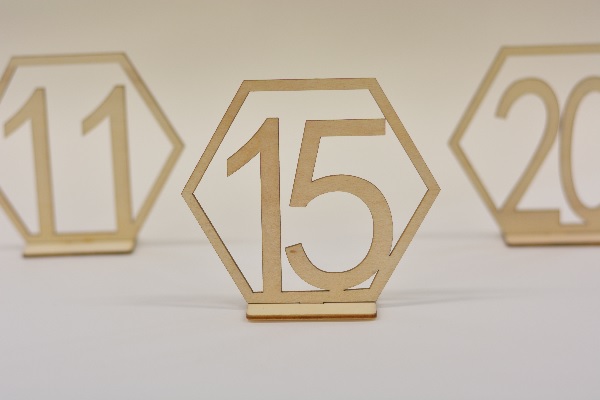 Näillä puisilla kuusikulmion muotoisilla pöytänumeroilla viimeistelet pöytäkoristelun ja teet vieraidesi olon helpommaksi. Täydellinen valinta Sinulle, joka haluat juhlastasi käytännöllisen, mutta tyylikkään!