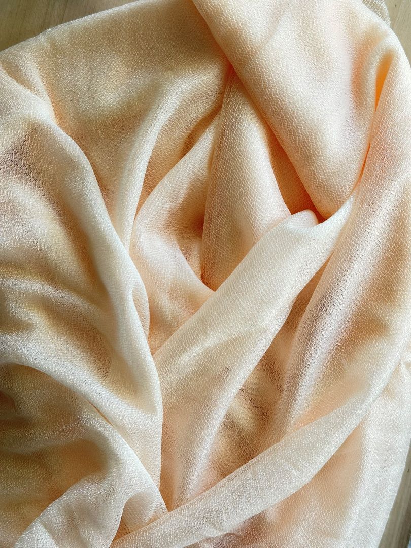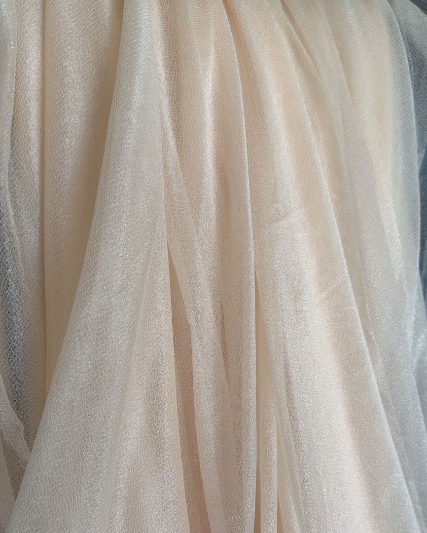 Upea kauniisti laskeutuvaa, hieman kiiltävää materiaalia oleva somistuskangas. Sopii erinomaisesti juhlakaarien, taustaseinien, juhlatilojen tai pöytien koristeluun. Kankaan väri vaalea persikka/nude. Pituus on 6m ja leveys 76cm.