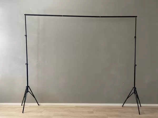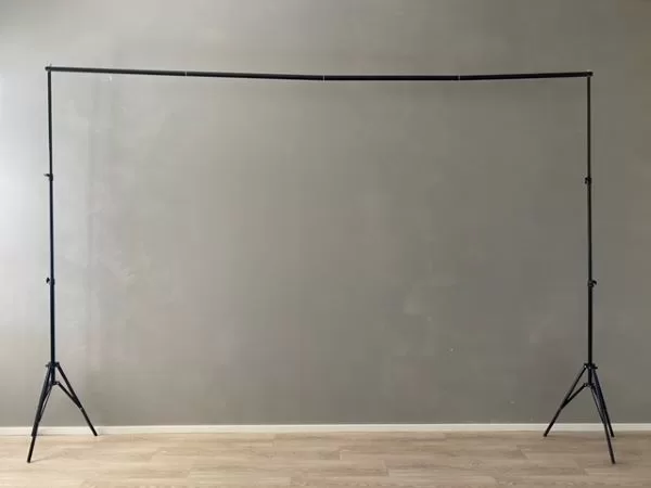 Helppokäyttöinen taustateline taustakankaille, verhoille ja valoille. Korkeutta voit säätää portaattomasti 2m ja leveyttä 75cm välein aina 3m asti.